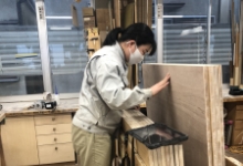 先輩の指導を受けながら、実際に簡単なものを自分で作ることを始めます。スキル・チャレンジ ・3級家具技能士